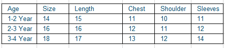 | Age | Size | Length | Chest | Shoulder | Sleeves |