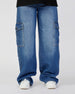 Eminent Women's Straight Cargo Denim Pant - Mid Blue