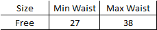 | Size | Min Waist | Max Waist |
