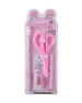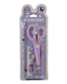 The scissor set is designed for kids with safe, rounded edges that make cutting easy and worry-free. The handles fit small hands comfortably. It helps children practice fine motor skills while doing crafts. The blades cut paper smoothly without tugging. A useful tool for school projects and creative activities.