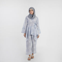 Women's Printed Cut Daman Western Co-Ord Set - Blue