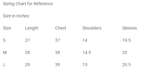 | Size | Length | Chest | Shoulder | Sleeves |